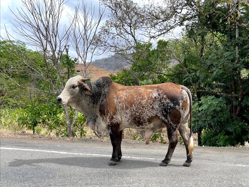 Whether from Audrey’s gazing looks or Brian’s glimpses snatched along rare straightaways, we puzzled over how differently the scenery looked from what we had expected.  This was not the lush and all-encompassing rainforest we imagined, looking more like grazing land of the cattle ranches in the western U.S.  We saw cows and horses (including people riding horses along the roadside as their choice of transportation) instead of sloths and monkeys.  Later we learned that the area’s long history of cultivation and grazing turned the peninsula into one of Panama’s most heavily-deforested parts of the country.