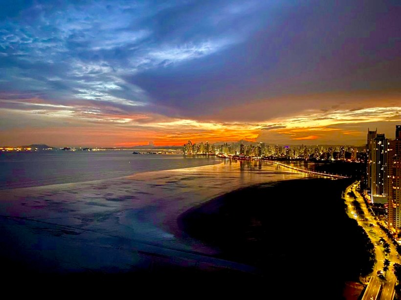 And so it seems we have sunsets returning to our daily lives very soon.  One of the things we most loved during our four years in Morocco was our apartment balcony’s 180 degree view of the Atlantic’s African coast, and each night we enjoyed watching the sun drop down into the ocean and, as Audrey liked to say, “dissolve like a lozenge into the water.”  Often it became a community event as neighbors across the apartments on GWA’s campus simultaneously went to their balconies or to the buildings’ rooftops to appreciate the gift of nature’s beauty, then hear the gift of human beauty when the Calls to Prayer from all the area mosques would follow immediately to echo across the many-hued sky.  The photo above, taken from the balcony of our soon-to-be-home, shows how before too long Brian will again be able to post nightly sunset photos to remind folks that – no matter what else we encounter in our days – at least there remains beauty in the world.  What an unexpected surprise to have traded our Atlantic sunsets in Morocco for Pacific ones in Panamá.